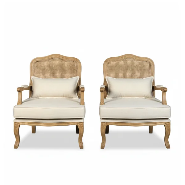 Poltronas Entalhada Clássica King Encosto de Tela Imbuia com Tecido Linho Off