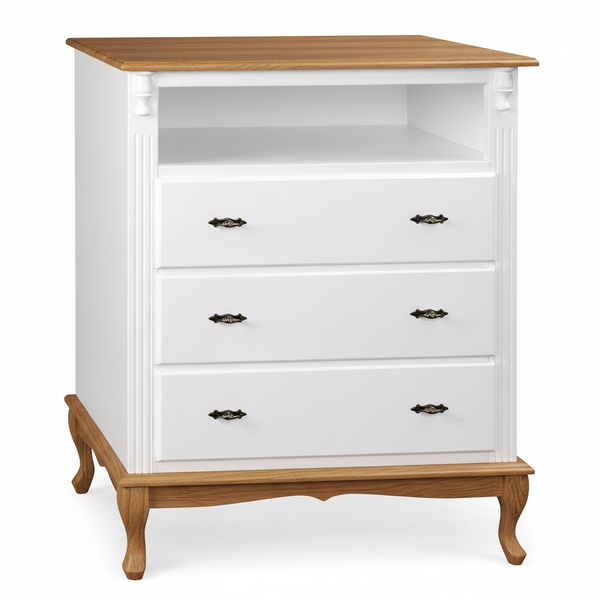 Cômoda 3 Gavetas e 1 Nicho Pés Luiz XV