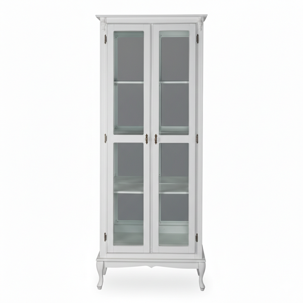 Cristaleira 2 Portas 3 Prateleiras Maciça com Espelho Pés Luiz XV