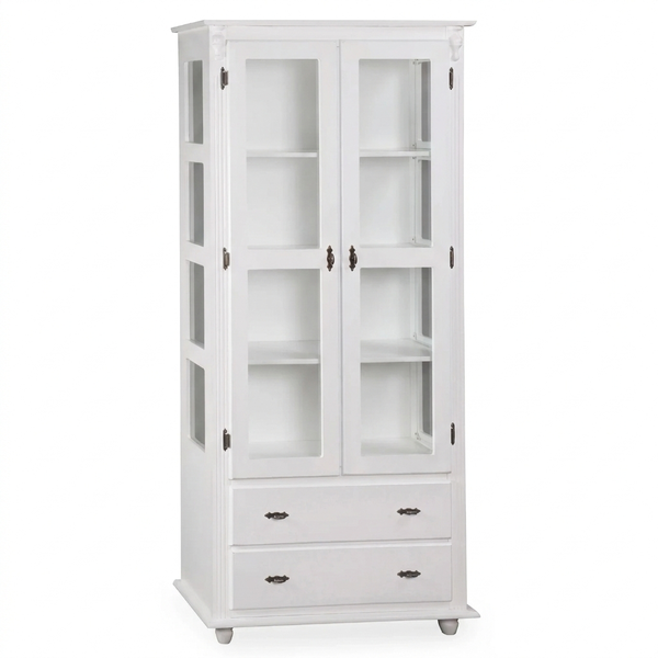 Cristaleira 2 Portas de Vidro 2 Gavetas com Prateleiras Maciças Pés Torneados