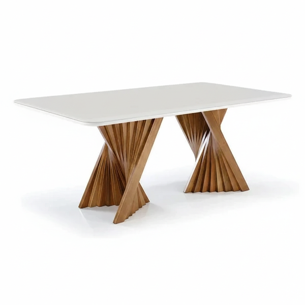 O Design moderno da mesa, fornece conforto e destaca-se nos mais variados ambientes, trazem um toque de elegância. Ela também é feita em madeira maciça, trazendo a peça, grande vida útil sem que o charme do produto se perda na sua rusticidade.