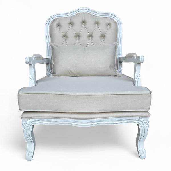 Poltrona Entalhada Clássica King Encosto Capitonê Linho Off White