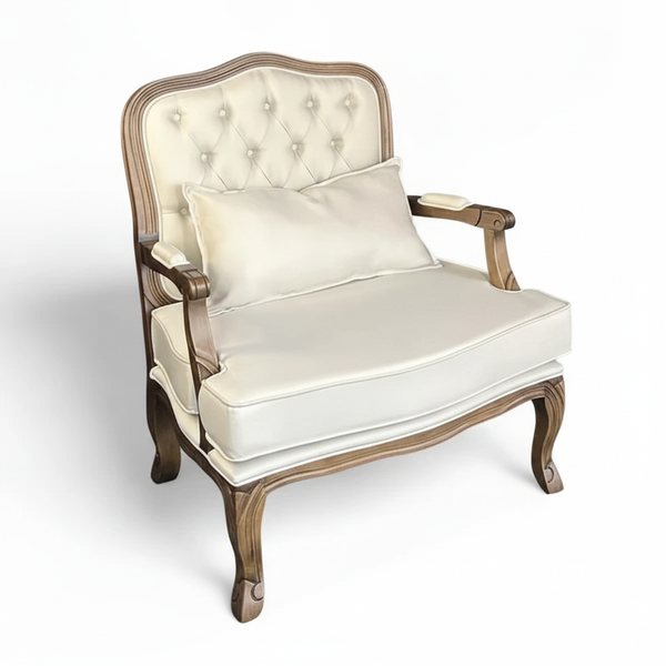 Poltrona Entalhada Clássica King Encosto Capitonê Linho Off White