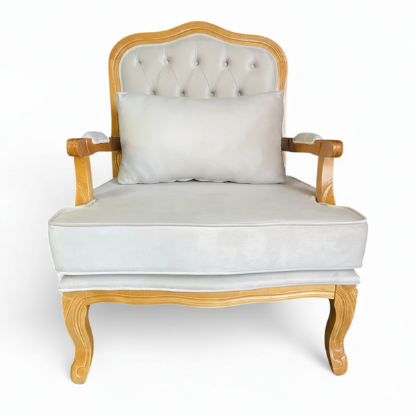 Poltrona Entalhada Clássica King Encosto Capitonê Suede Off White