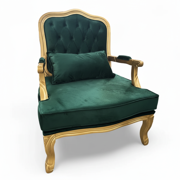 Poltrona Entalhada Clássica King Encosto Capitonê Suede Verde
