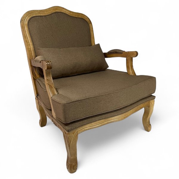 Poltrona Entalhada Clássica King Encosto Estofado Linho Marrom