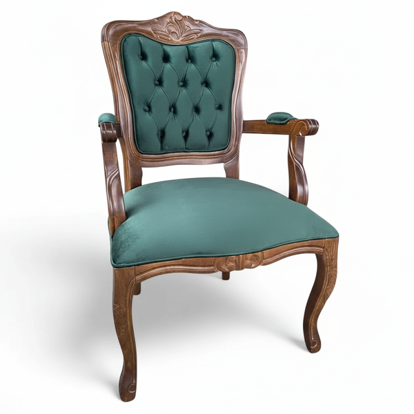 Poltrona Luiz XV com Braço Entalhada Clássica Capitonê Suede Turquesa
