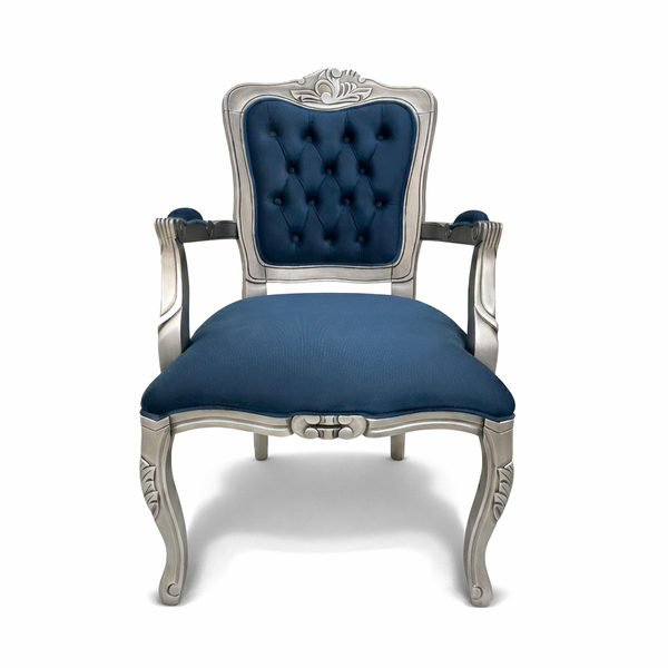 Poltrona Luiz XV Entalhada Clássica Capitonê Suede Azul Marinho
