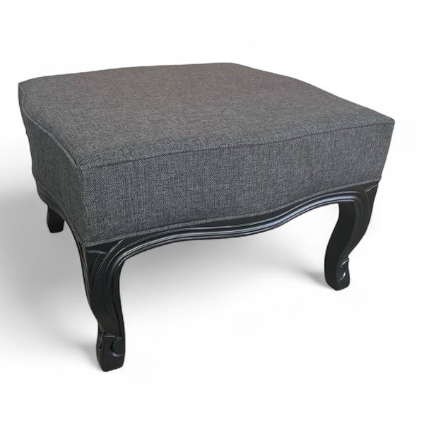 Puff Entalhado Clássico Imperatriz Linho Cinza Escuro